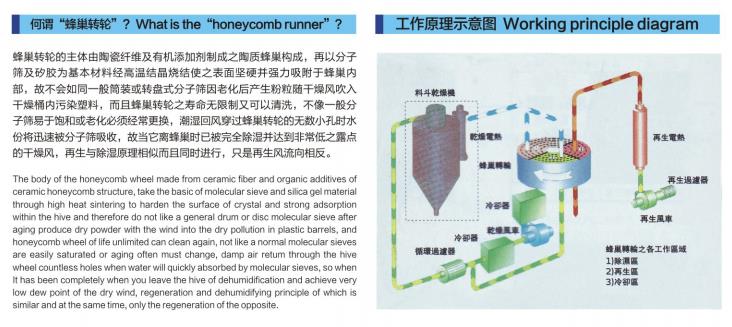 該系列采用PI.D.溫度控制系統(tǒng),可精確控制再生溫度; 該系列除濕系統(tǒng)采用冷卻器結(jié)構(gòu),確保更低回風(fēng)溫度及露點;內(nèi)部裝有回風(fēng)過濾器,確保蜂巢轉(zhuǎn)輪不受原料粉塵污染;采用全分子篩蜂巢除濕,相比矽膠吸附式蜂巢除濕效果更好。